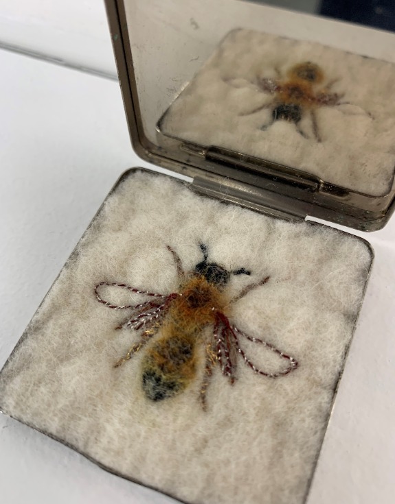 The Interconnectedness of All Things is the new ecological, collaborative exhibition devised by Artist Lydia Needle for which she has sculpted 50 more bee pieces from wool, thread and vintage containers.