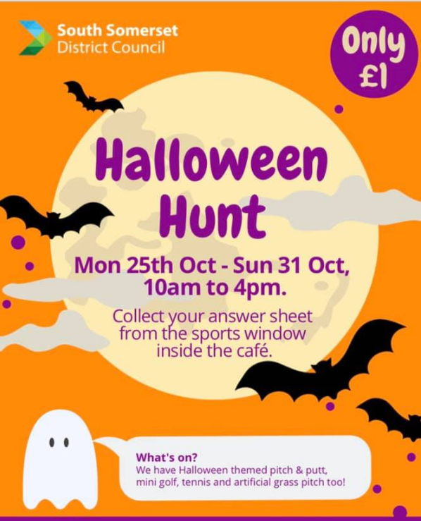 Halloween Hunt at Yeovil Recreation Centre, 10am-4pm. £1. Collect your answer sheet from the sports window inside the cafe.