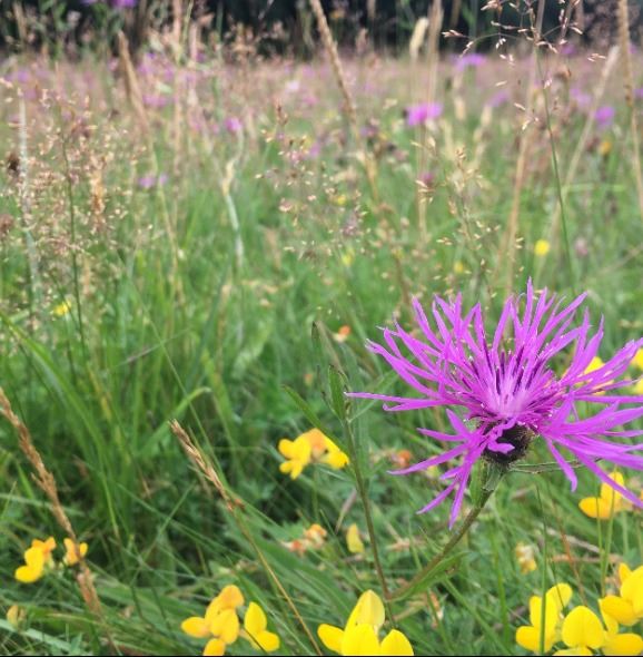 At this time of year (summer) you can enjoy the hundreds of orchids that emerge in the wildflower meadows, including pyramidal, early purple and common spotted orchids. The Knapweed meadow becomes awash with purples and yellows as the knapweed and birdsfoot trefoil come into flower. Along with the wildflowers arrive the insects including meadow brown, marbled white and common blue butterflies.