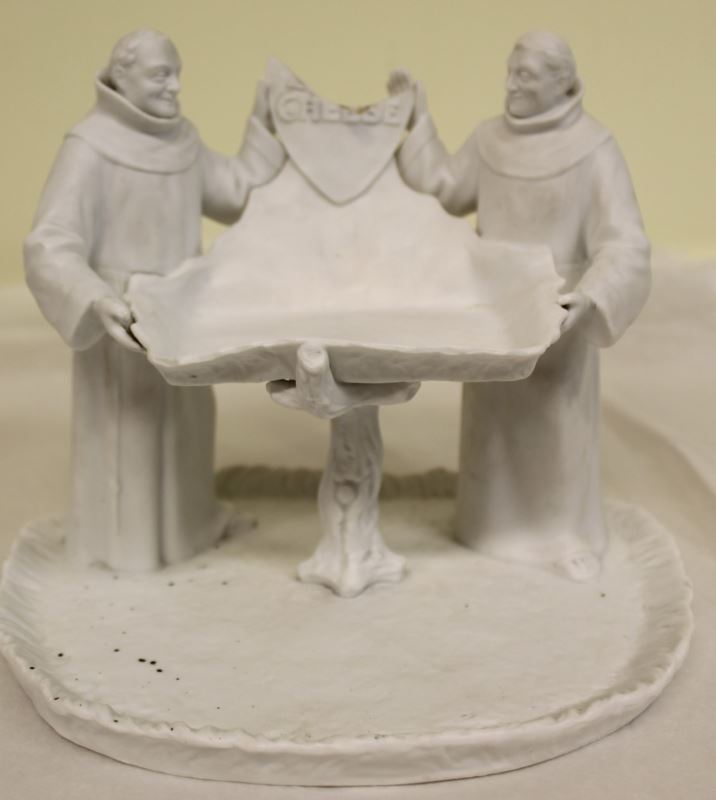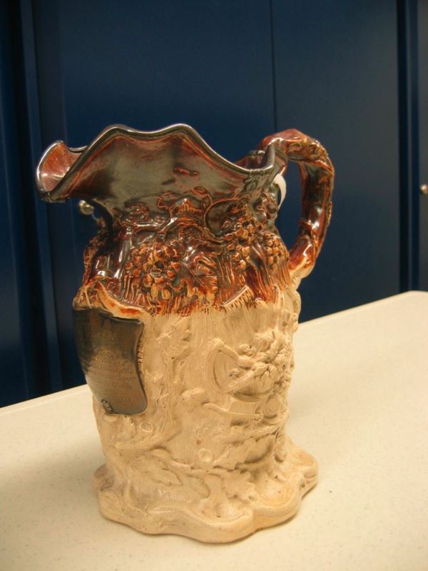Star ceramic items are the Yeovil Riot Jugs from 1831 and the St. Ivel Monks cheese serving dish, shown below. Yeovil Goss China and commemorative pieces are also of interest. An example from the Pinney Glass collection is also shown.