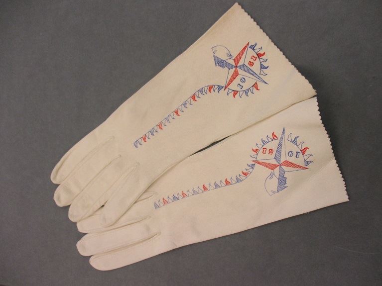 Gloves made by local manufacturers like Clothier & Giles and Ricketts plus formal, driving and fur backed gloves. Glove designs on acetate are also available to view on request. Glove tools include examples of the Donkey patented in Stoke sub Hamdon in 1807. From left to right a wooden glove finger stretcher and a wooden hand to display gloves, plus gloves from the South Somerset Heritage Collection.