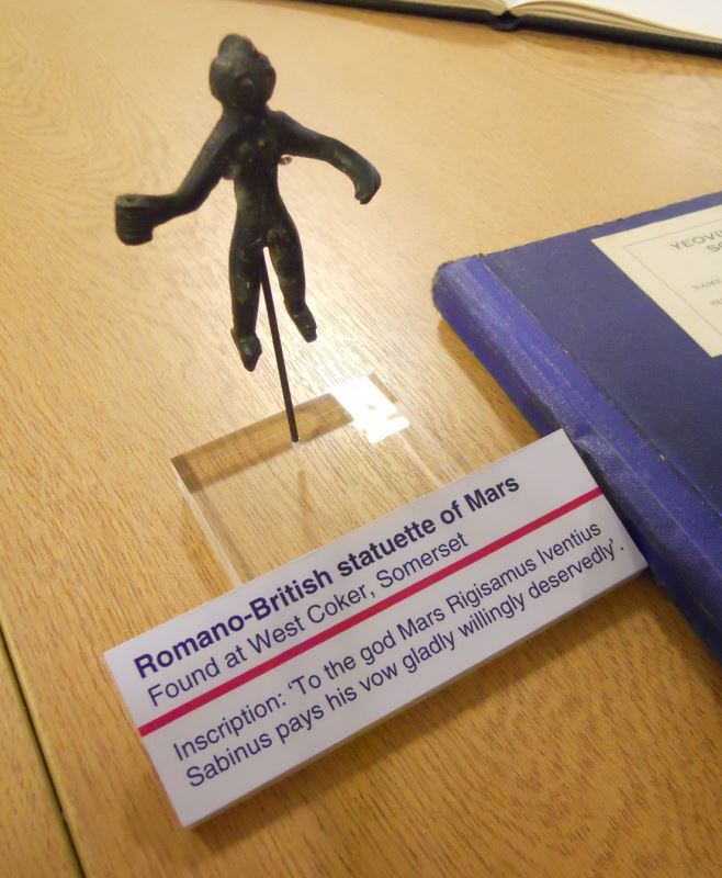 This forms an important part of the collection ranging from a Neolithic hand axe found on Wyndham Hill, shown below to a notable collection of well documented Roman coins collected by Gregory Stevens-Cox from Ilchester, an example of which is shown alongside the hand axe.